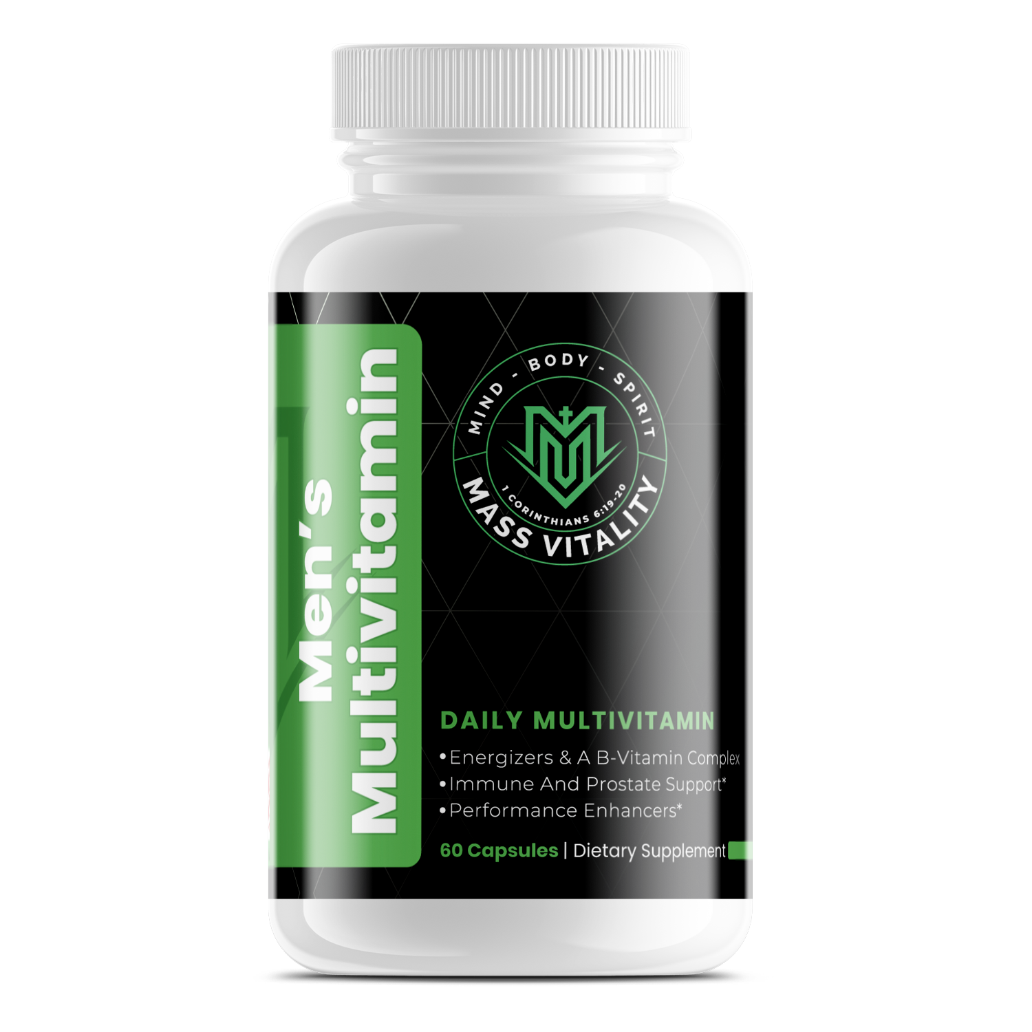 Men’s Multivitamin is formulated to support cardiovascular health, hormonal health, metabolic health, immune health, digestive health, sexual function, cognitive function, positive mood, and improved exercise performance.